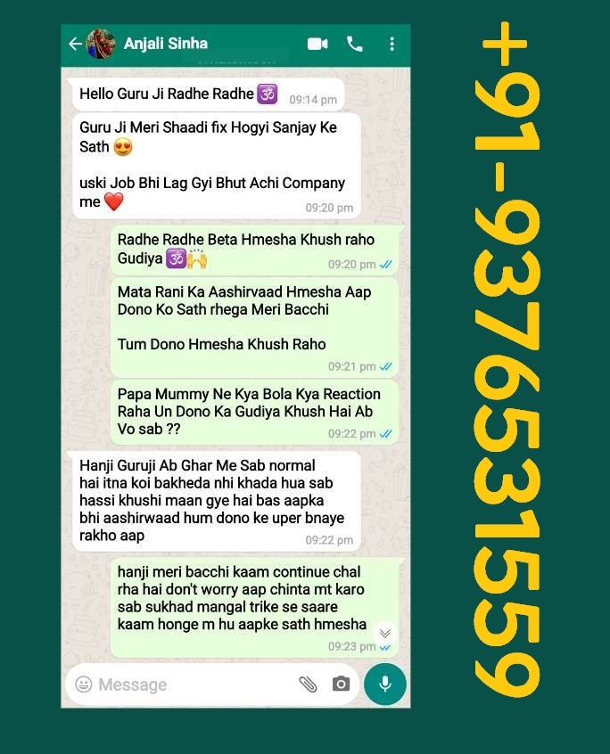 हर तरफ से निराश - हताश हो चुके एक बार हमारे से जरूर संपर्क करे। हमारा वादा है आप से, आप निराश नही होंगें। खोया प्यार पाए, प्रेम विवाह, शादी मे समस्या, ग्रह कलेश, पति पत्नी मे अनबन, पारिवारिक समस्या, वीजा आदि।!